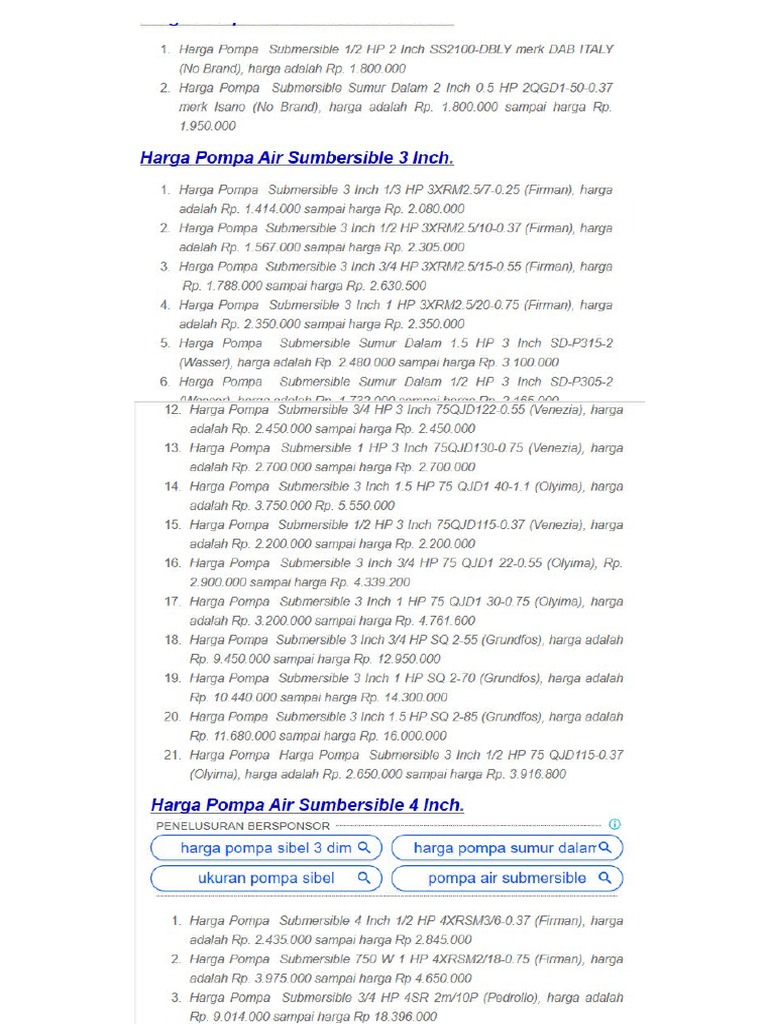 Jika tidak percaya, cek saja 10 pompa air berikut ini yang memiliki harga jual baru 1 jutaan rupiah! Harga pompa air itu tidak terlalu mahal loh, bahkan ada yang murah, jadi bisa didapatkan oleh semua kalangan. Banyak juga produk pompa air yang harganya kurang dari rp1 juta. Harga mesin pompa air , pompa air terbaik, harga pompa air shimizu , harga pompa air sanyo. Harga pompa air jet pump dengan berbagai spesifikasi dan harga termurah.